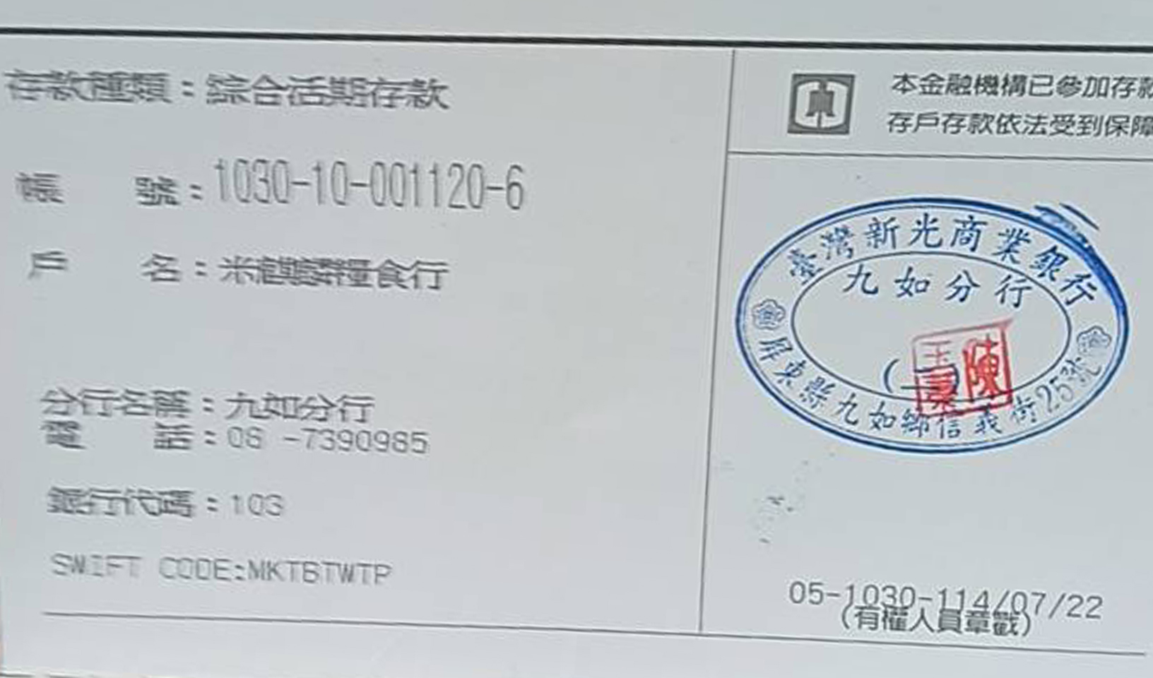 米行存摺