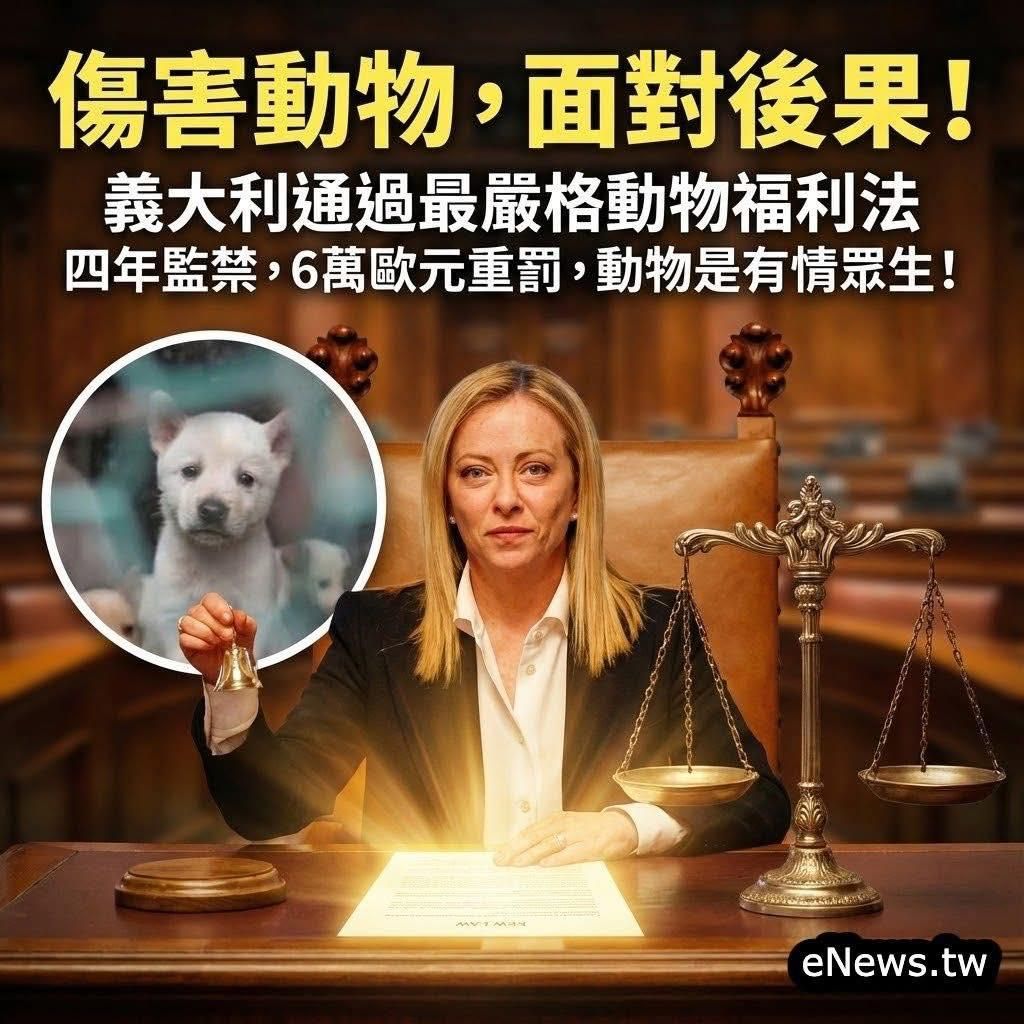 義大利在2025 年 7 月 1 日正式實施「布蘭比拉法」的新動保法律,這是目前全歐洲最嚴格的動物保護法之一。