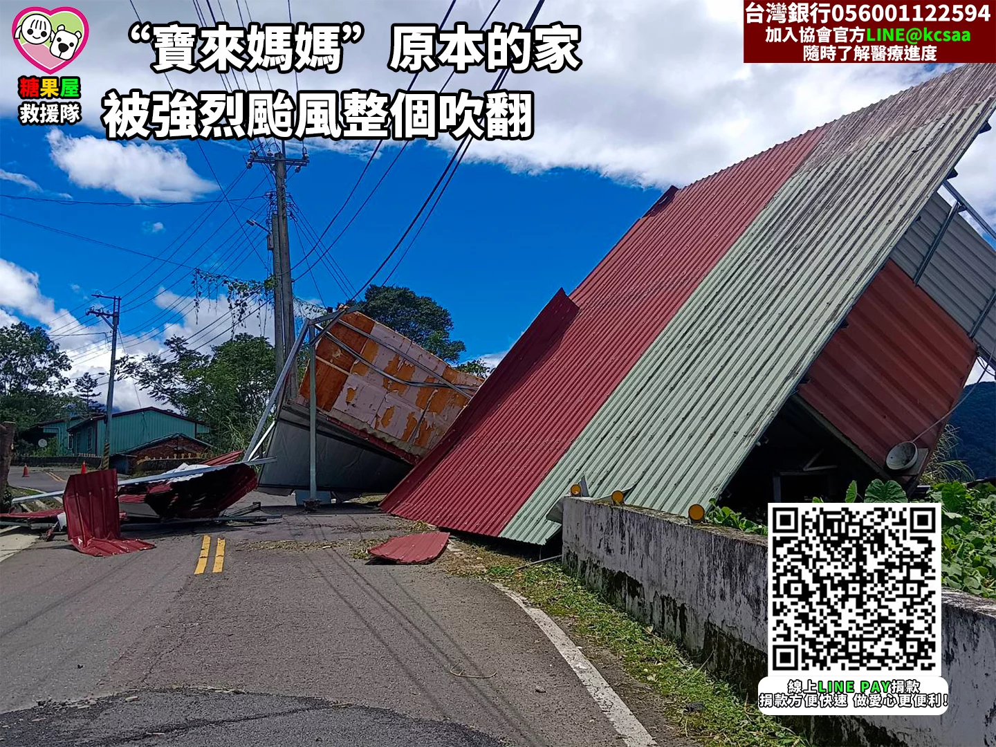 沒想到一個‘’楊柳颱風‘’把寶來媽媽避風港都吹倒,很幸福媽媽跟小孩子都還活著。